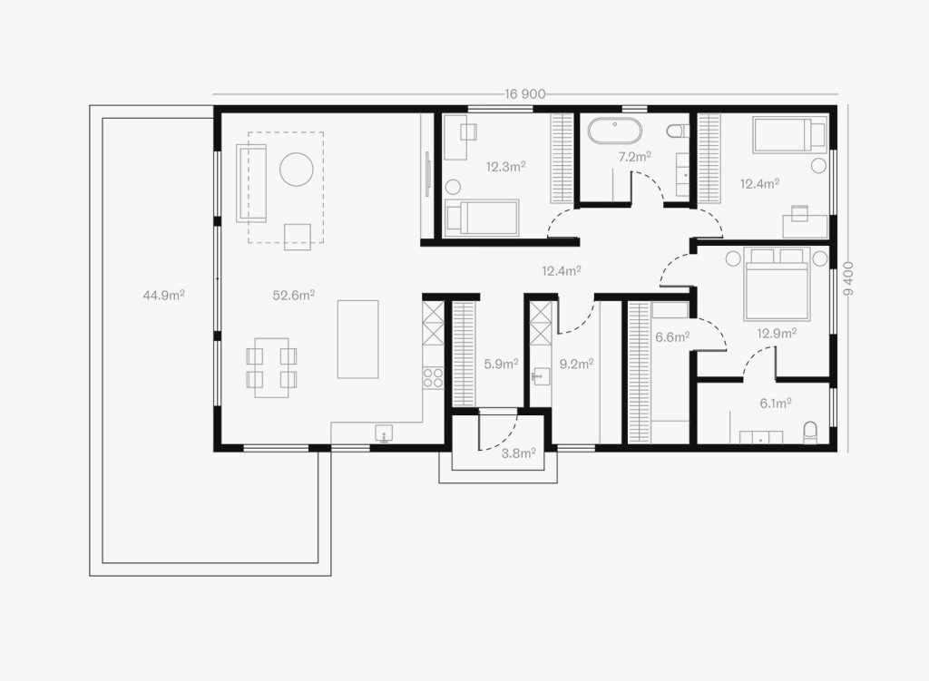 Living space: 138 m2 Building area: 215 m2 Incl. terrace: 45 m2