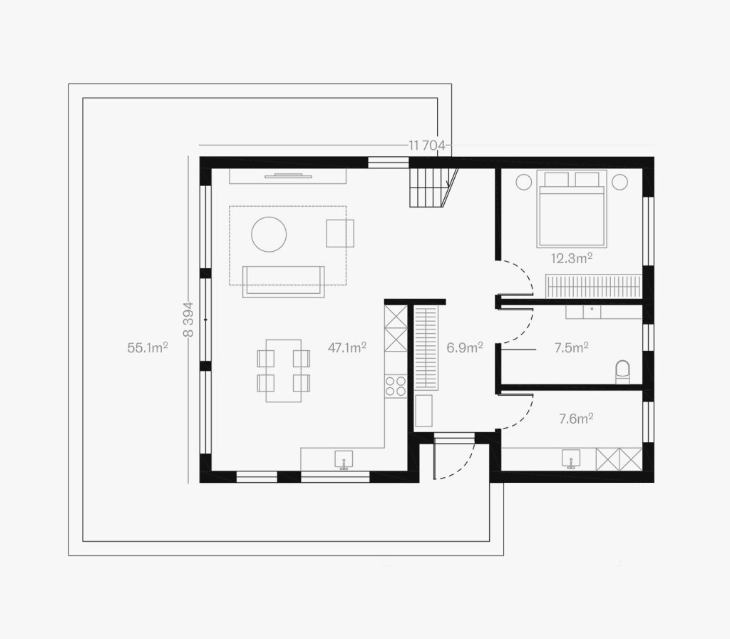 Constructed with modern glulam logs, the space is filled with the warmth and coziness of natural wood, both inside and out. Meanwhile, timber framing offers the flexibility to substitute interior walls with alternative materials, enabling a personalized touch based on your preference.