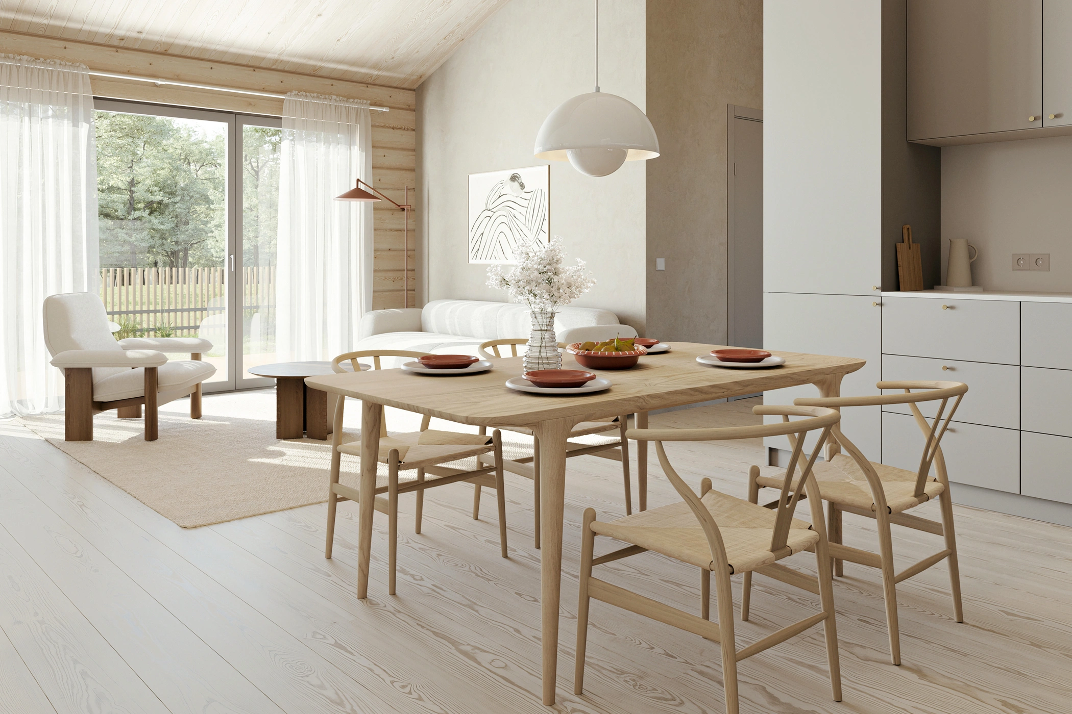 Constructed with modern glulam logs, the space is filled with the warmth and coziness of natural wood, both inside and out. Meanwhile, timber framing offers the flexibility to substitute interior walls with alternative materials, enabling a personalized touch based on your preference.